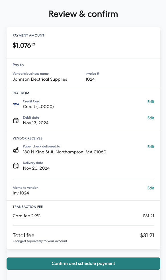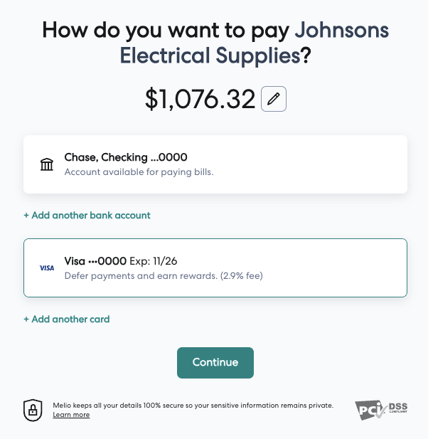 11. Choose how your vendor receives the payment. We pay vendors for you. Vendors don't need to sign up or pay any fees.