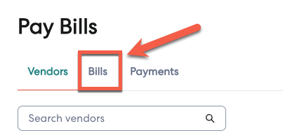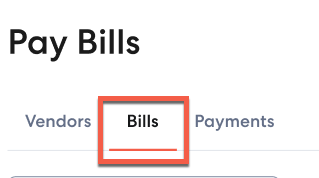 4. In the Bills tab, you can create a new bill by selecting either Create bill or + New payment. This will lead you to the Bill details screen.