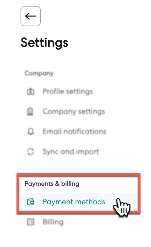 2- In the Settings page, find and select Payment Methods from the settings sidebar menu.