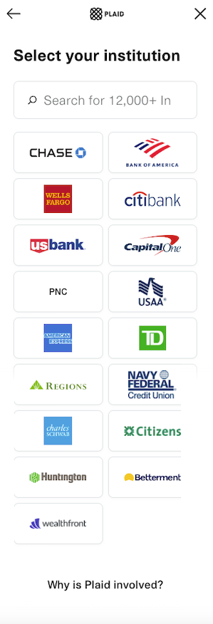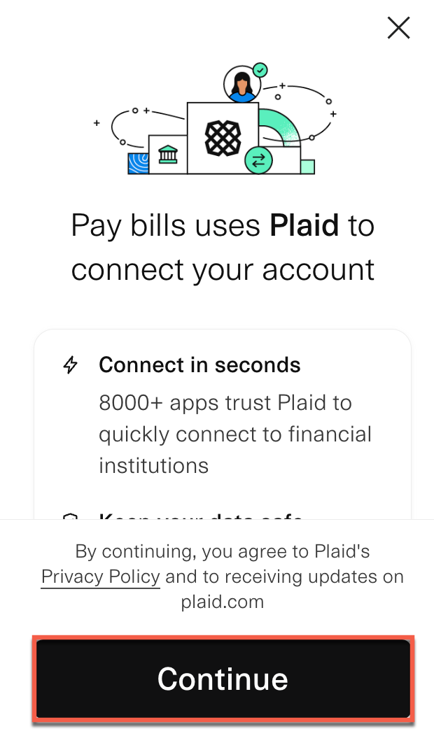 ℹ️ You may be prompted to agree to Plaid's terms and conditions to continue.