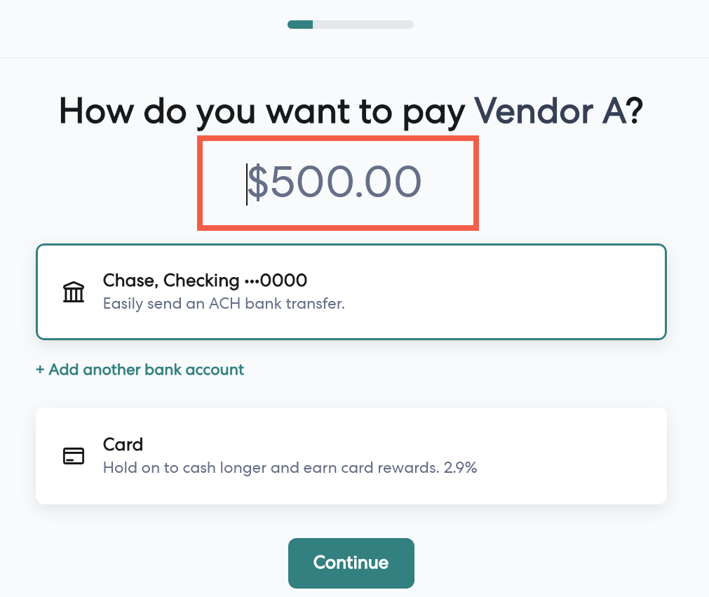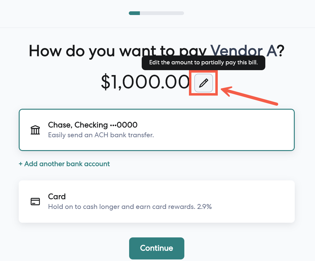 The Partial Payments feature in Gusto Bill Pay gives you greater flexibility in how you handle your vendor payments. You can split a single bill into multiple payments and choose different payment methods for each one.