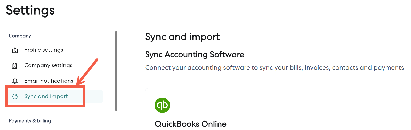 - How: Go to the Sync and import section from the Settings page, select your accounting software, and follow the steps to sync your accounts.