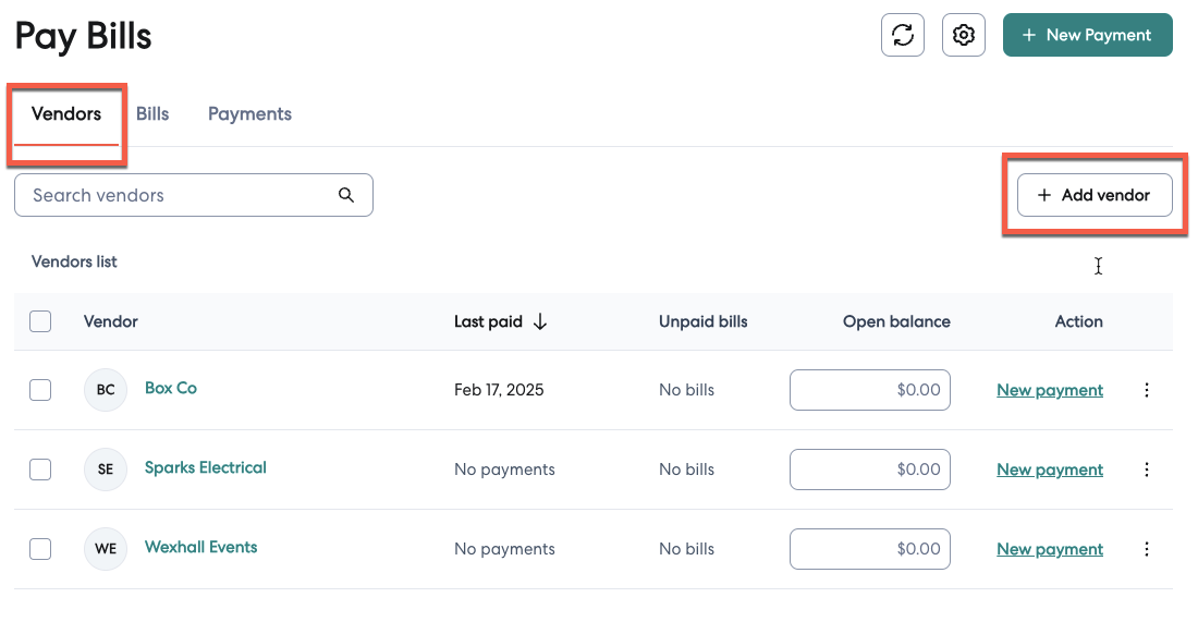 You can add a vendor as you create a new payment by following the steps below.