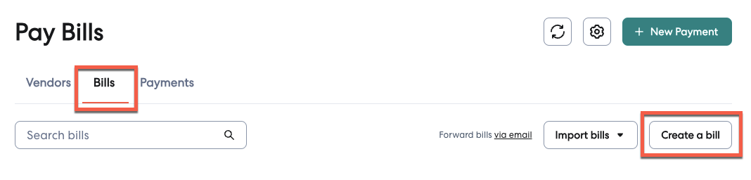 4- Once in the Bills tab, select Create a bill to open up a new bill.
