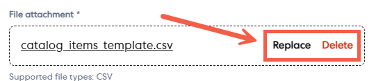 6 - In the pop-up window, attach the CSV file with the list of items.