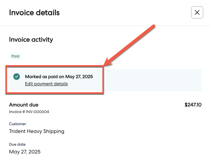 That's it! The invoice has now been marked as paid, and the payment details have been recorded.
