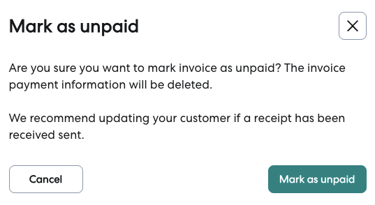 6- In the pop-up message, confirm your action by selecting the Mark as unpaid button.
