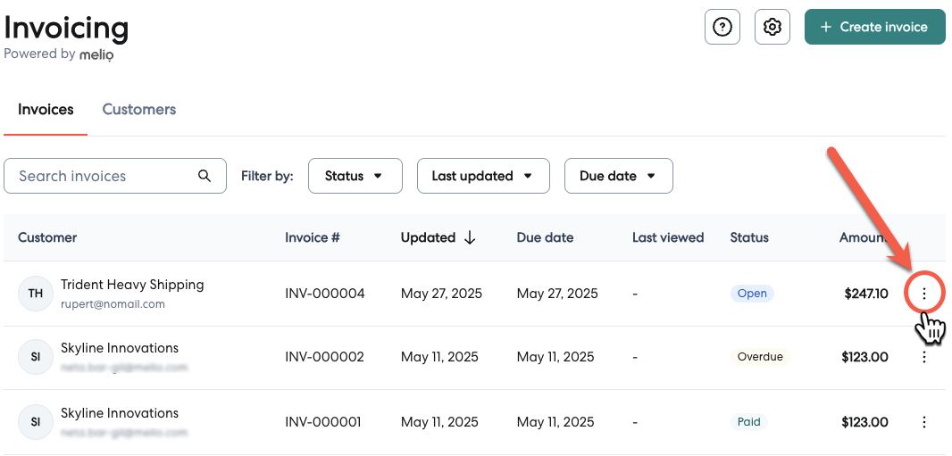 10- Select the three dots on the right side of the invoice.