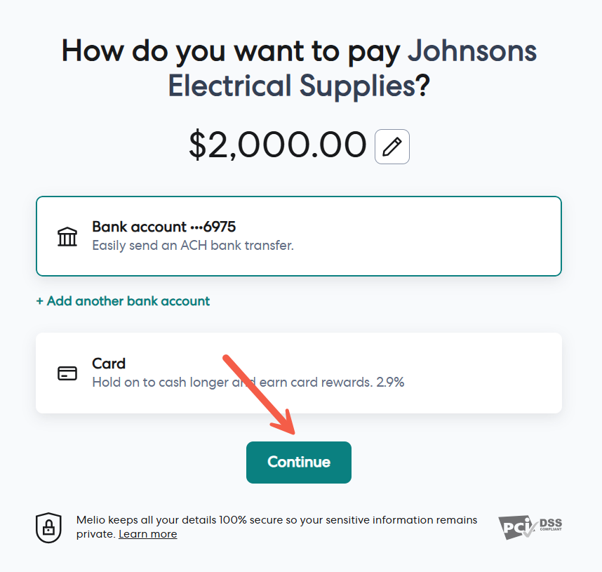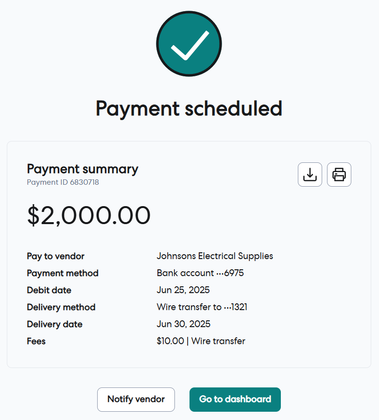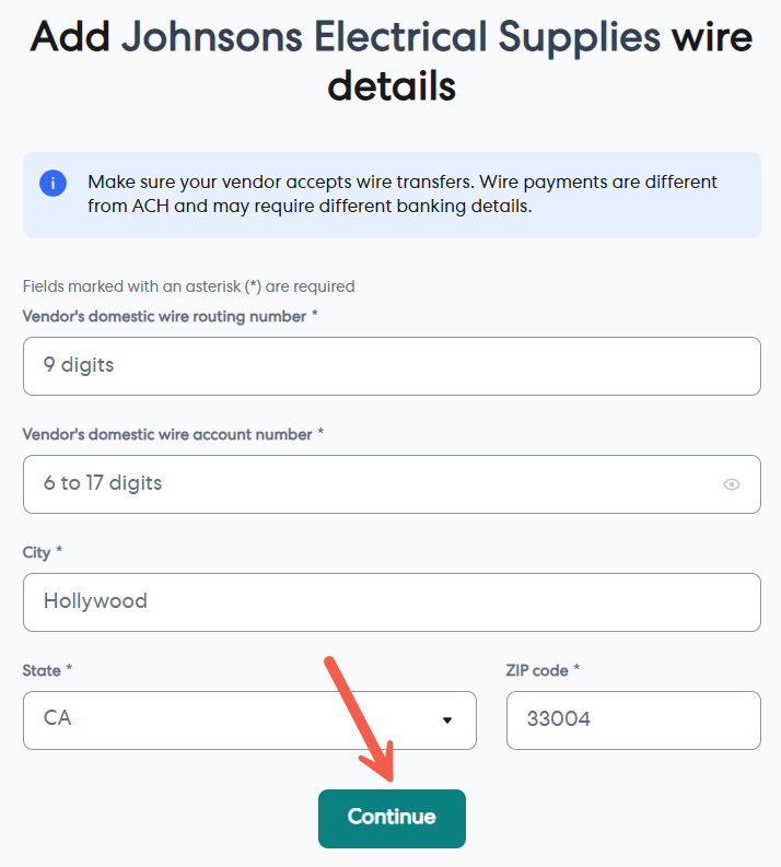 6 - You will be prompted to submit the vendor’s wire details, and you only need to do so when paying a new vendor for the first time.