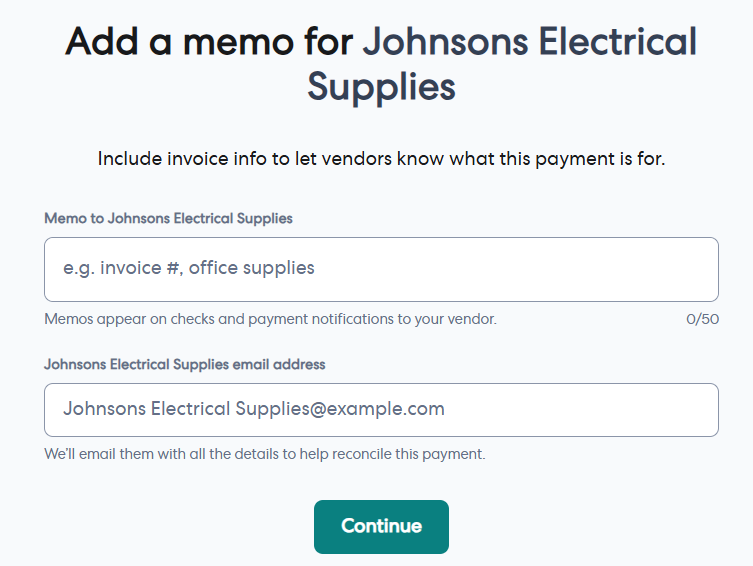 2 - Fill in all the payment details: vendor business name, amount, due date, etc.