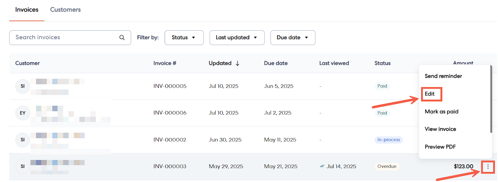 4 - Find the invoice you want to send a reminder for in the list.