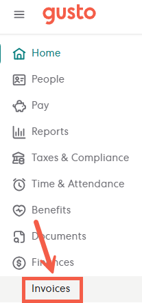 1 - In your Gusto Dashboard, select Finances from the left-hand sidebar.