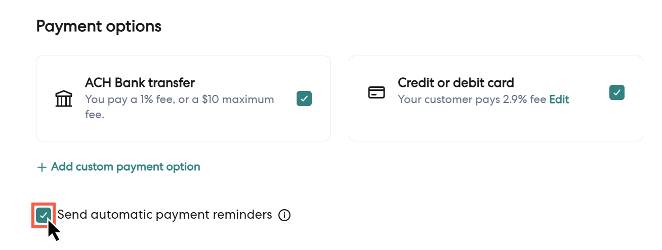 5 - Check the Send automatic payment reminders checkbox.
