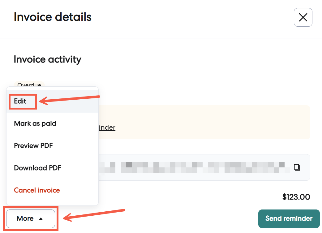 3 - In the Invoice details window, select More at the bottom left.