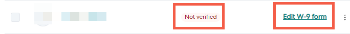 4 - If the status is Not verified, click Edit W-9 form located under the warning message.